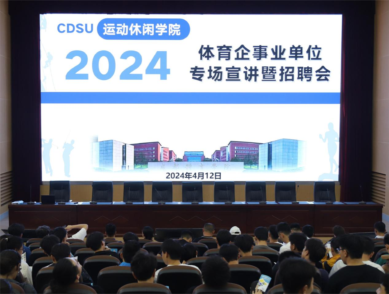会议开始,樊莉书记对前来招聘宣讲的上海巅峰健康科技股份有限公司、贵州鹰极体育旅游有限责任公司、海南奥盛高球体育管理有限公司、四川田湾河旅游开发有限公司、成都世豪美航健身服务有限责任公司、成都酷式体育文化有限公司、成都融创娱雪体育发展有限公司、凯联体育文化有限公司、奥淞体育9家用人企业表示了衷心的感谢和欢迎,紧接着,各企业依次进行了宣传,从公司的运行模式到客户群体,再到薪资水平和晋升制度都进行了深度的讲解。集中宣讲结束后,9家用人企业在行健楼A103、A104教室与同学们进行了面对面的答疑交流与简历投递。