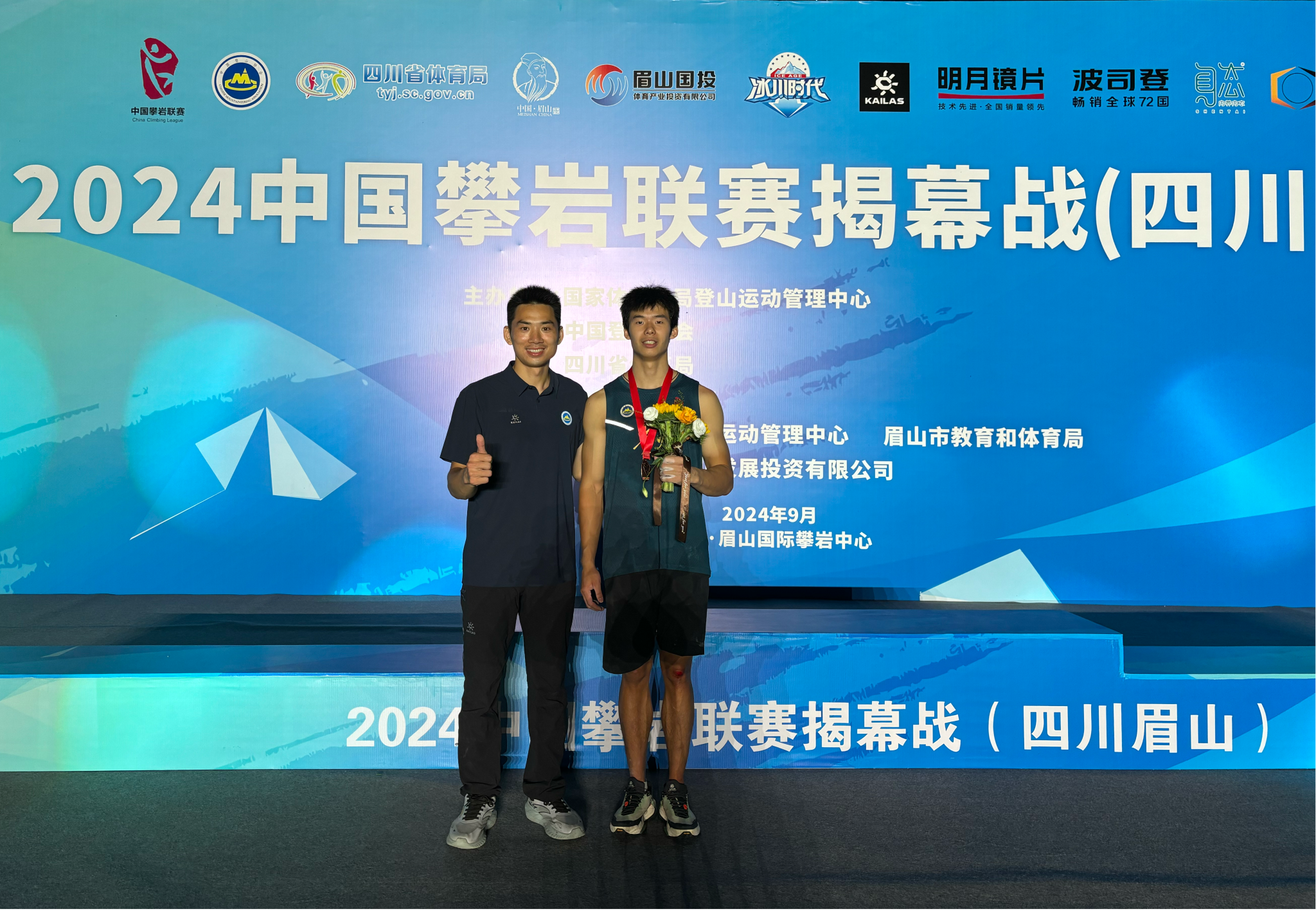 2024年9月14日晚9时,在2024中国攀岩联赛揭幕战男子速度赛的角逐中,我校2023级攀岩代表队学生龙见国获得季军。