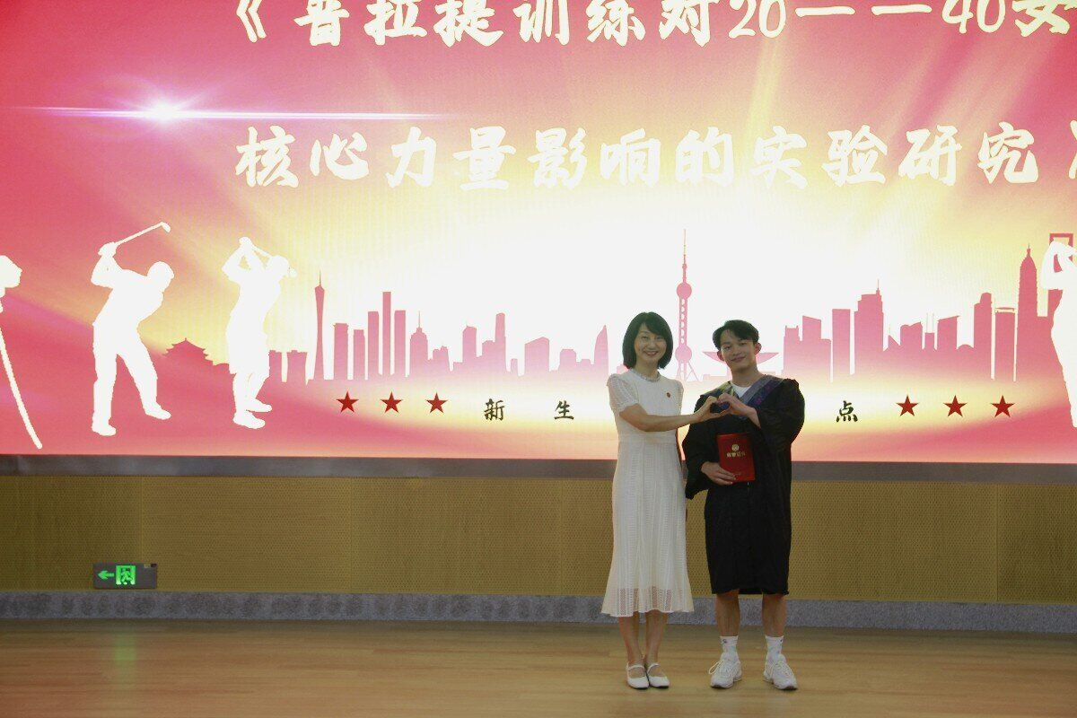 随后,运动休闲院院长曾洪林教授宣读硕士、学士学位授予决定,曾洪林教授、闫虹副教授、蒋书君副教授为获得硕士学位同学授位。曾洪林教授、舒建平教授、闫虹副教授、蒋书君副教授、徐鹏老师上台为获得教育学学士学位同学授位。