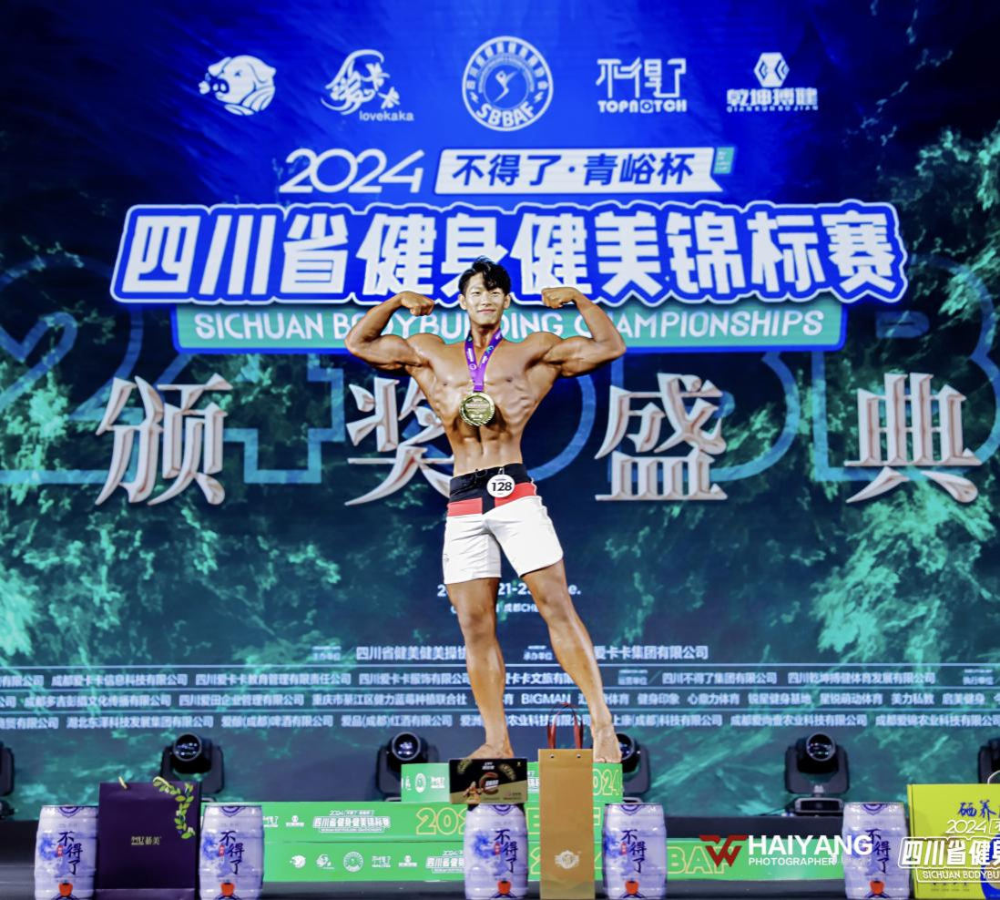 B组、男子健体C组、男子传统健美获得了一等奖,其中男子健体C组和传统健美获得了冠军,我校马明昊同学更是在男子健体全场赛中从六个男子健体组别前三名同场竞技赛中获得了全场第三名的优异成绩