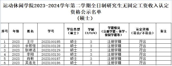 mile米乐集团官网2023-2024学年第二学期全日制研究生无固定工资收入认定资格公示名单 (硕士)
